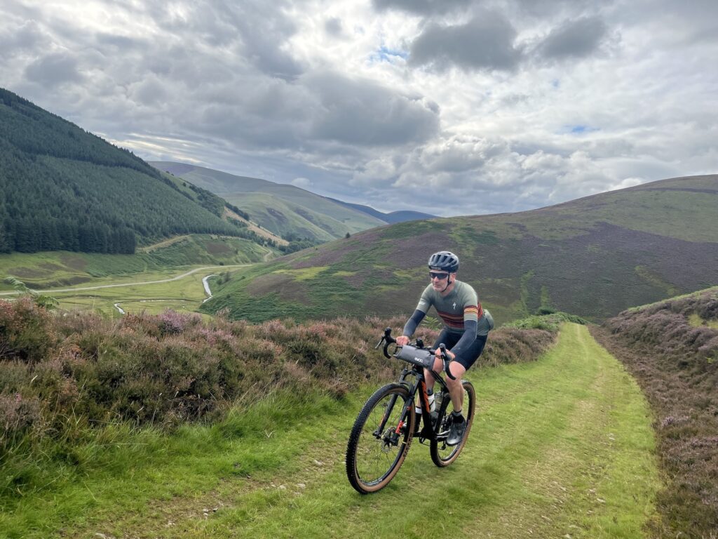 Een paar dagen later zet ik de test verder op vakantie in de Schotse highlands. Een eerste rit met mijn zoon brengt me vanuit Innerleithen over brede gravelpaden en weiden naar één van de bekendste mountainbikeparken van het Verenigd Koninkrijk, dat van Glentress. Met de 34 x 51 versnelling peddel ik de brede pistes vlot naar boven, als het echt steil wordt en de Wahoo stijgingspercentages van net geen dertig procent aangeeft moet je heel erg op het puntje van het zadel gaan zitten om het voorwiel aan de grond te houden. Eens over de top is het een zegen om de Fox vork vanaf het stuur te kunnen bedienen, met de STI-shifter gaat dat zo mogelijk nog gemakkelijker dan met een remote knop van een veringfabrikant. In de afdalingen is de meerwaarde van de 100 mm veerweg niet te vergelijken met wat een gravelvork van amper 40 mm veerweg slechts kan bieden. Grote klappen worden een pak beter verteerd terwijl de 2,25” mountainbikebanden een surplus aan comfort, grip en veiligheid bieden. Al zit er aan al die voordelen ook een limiet, meer bepaald als het steil en technisch naar beneden gaat want dan kom je in de problemen met de zitpositie. Om de volledige slag van het remhendel te kunnen benutten en om het stuur zo breed mogelijk te kunnen pakken (je hebt tenslotte hefboom nodig om die brede voorband ingestuurd te krijgen), moet je het stuur onderaan vastpakken. Waardoor je gewicht naar voren én vooraan naar beneden wordt verlegd, wat het risico op overkop slaan doet toenemen. Zodat je zo ver mogelijk achter je zadel moet gaan hangen, maar dat is bij gebrek aan dropper post en door de lange zithouding allerminst evident. Terwijl de dames en heren met knie- en elleboogprotectoren op fully’s me langs links en rechts tegelijk voorbij komen geknald, heb ik mijn limieten en die van de X-Myroon gevonden.