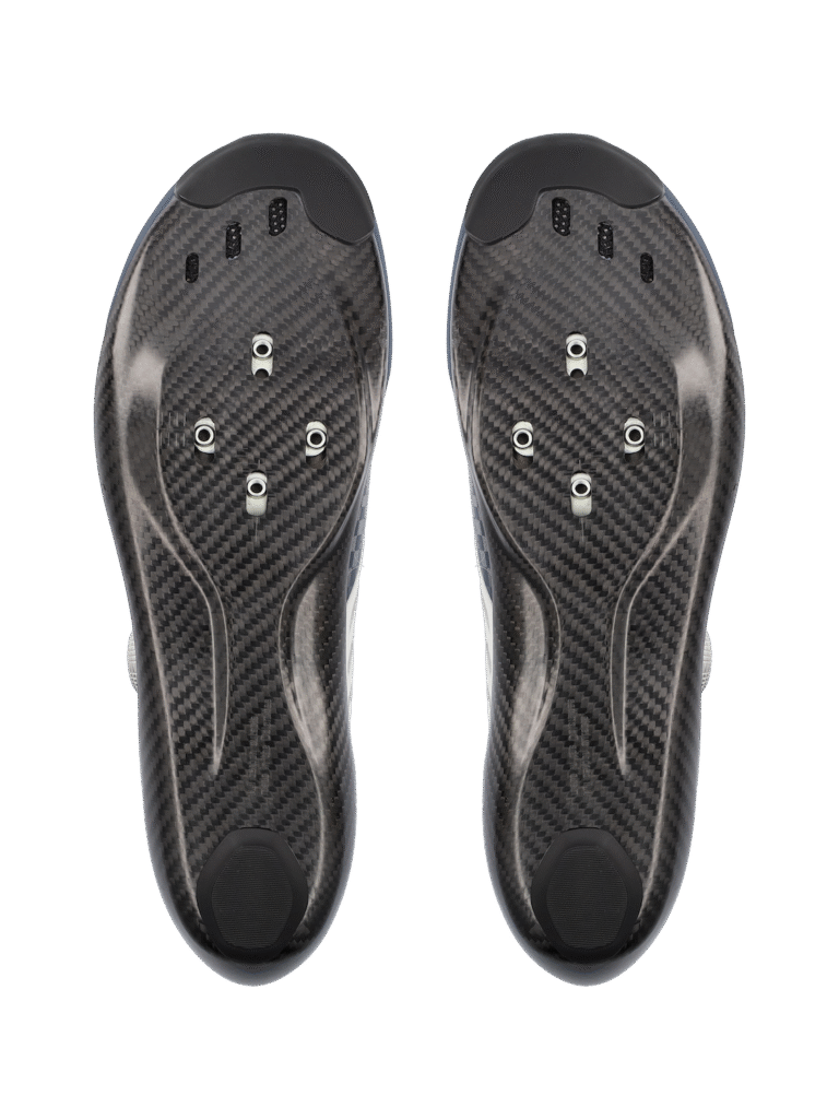 Het unieke van de Unique Pro 4.0-schoen van Q36.5 zit hem in de handgemaakte carbon buitenzool, die perfect met het pedaal is geïntegreerd en waarvoor momenteel een octrooi in behandeling is. De metatarsale zone van de zool (ter hoogte van je middenvoetsbeentjes, daar waar je voet het breedst is) is bovendien vrij breed, wat de pasvorm voor heel wat mensen toegankelijker maakt en het comfort verhoogt. Ook de schoen zelf heeft een lage stackhoogte van 4,4 mm. Door schoen en pedaal heel nauw op elkaar af te stemmen, wordt de druk gelijkmatiger verdeeld, aangezien het contactoppervlak groter wordt en je met de volledige voetzool duwt. Tijdens de trapbeweging zijn er dan minder dode punten en de kracht wordt voortdurend overgebracht.